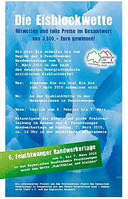Erst 24 Kilogramm des ca. 600 Kilogramm schweren Eisblocks sind seit dem Auftakt der Eisblockwette am 5. Februar 2010 geschmolzen. Im Rahmen der 6. Feuchtwanger Handwerkertage wurden nun die ersten Gewinner ermittelt. [mehr]